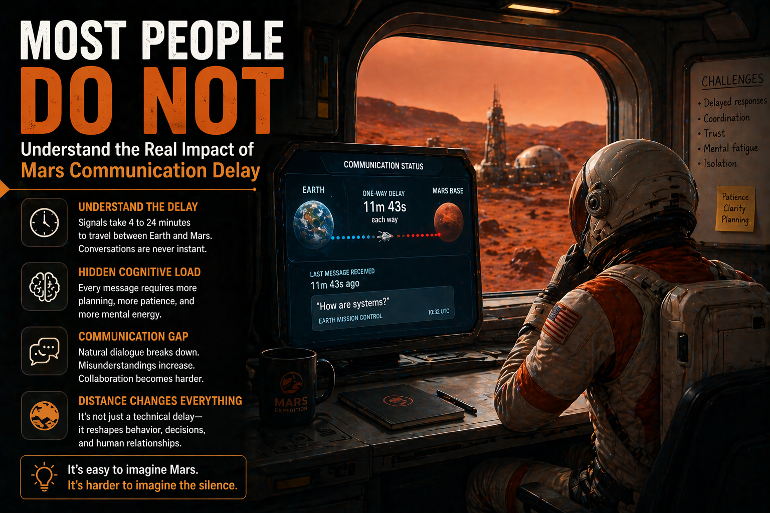 Some readers treat space topics as distant spectacle, yet mars communication delay arguments matters now because it reveals which human problems scale badly under extreme conditions. Privacy, boredom, trust, timing, meals, sleep, and routine are not side notes. They are mission variables. The earlier we take them seriously, the better future habitats will be.